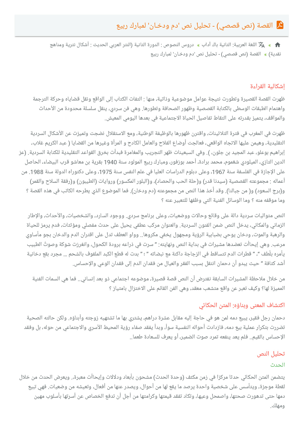 تحليل قصة قصيرة Pdf