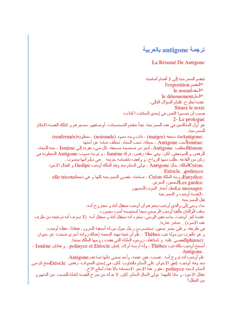 قصة antigone مترجمة بالعربية pdf. طريق الباك الأولى باكالوريا الأولى باكالوريا دروس مشروحة الأولى باكالوريا مادة الفرنسية الأولى باكالوريا romans résumé d antigone en arabe شرح و ترجمة قصة أونتيغون بالعربية. فيلم كونغ فو شاولين كامل ومترجم. تلخيص رواية antigone والشرح بالعربية شكرا لك أخي بارك الله فيك التعديل الأخير تم بواسطة n kyo. قصة antigone مترجمة بالعربية pdf.