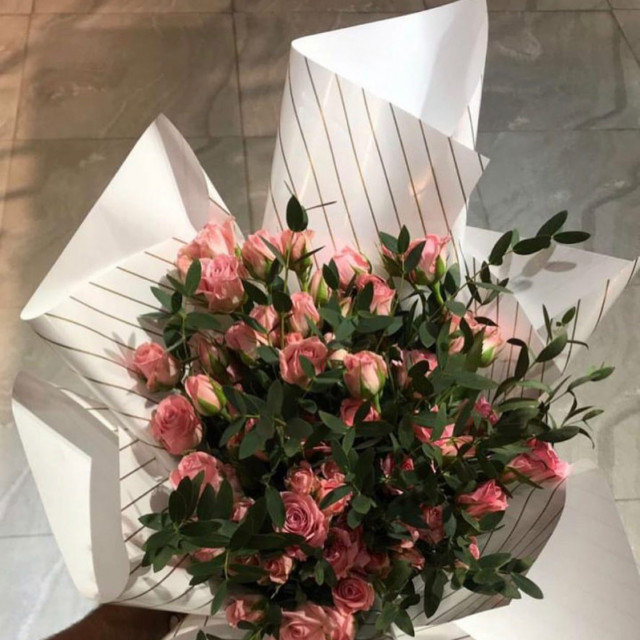 بوكيه فاخر 20 وردة جوري مع بيبي روز أبيض محل ورد الرياض